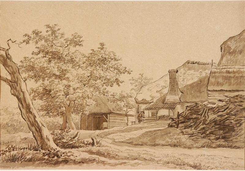 Boerderijcomplex met links op de voorgrond bomen