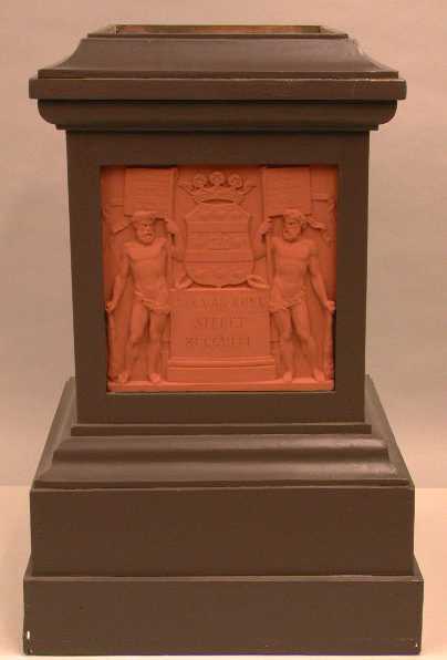 - BeschrijvingIn het piedestal een gipsen voorstelling van het wapen van Jan van Cuyk met het onderschrift: JAN VAN CUYK STERFT MCCCVIII