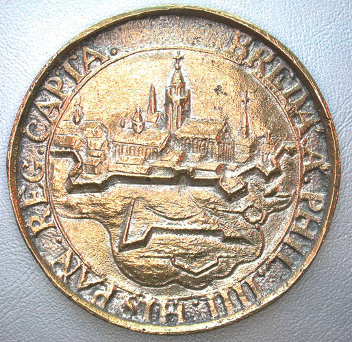 Kz: binnen een getrokken rand, een gezicht op Breda; omschrift: BREDA.A.PHIL.
