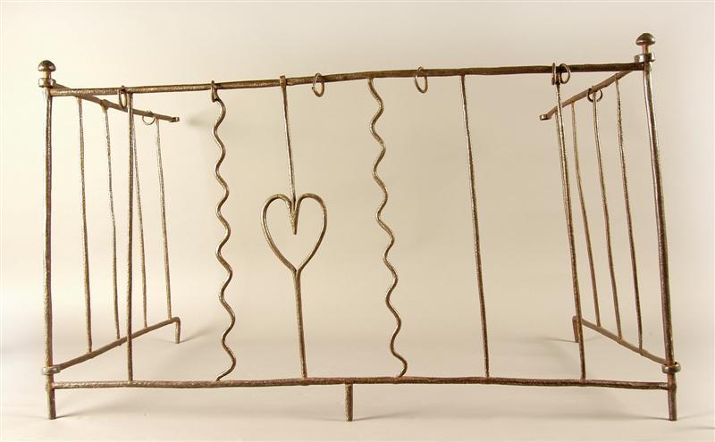 - BeschrijvingIJzeren vuurtuin met drie panelen. Middelste breedste paneel is voorzien van een gesmeed hart. Zijpanelen scharnieren aan het middenpaneel. Het geheel dient in U-vorm te worden opgesteld.