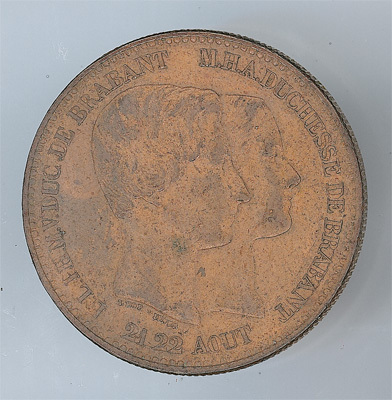 Huwelijk van de hertog van Brabant, 1853 (voor 5 francs gangbaar) (voor 10 centimes