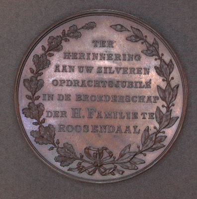 Bronzen jubileumpenning der broederschap der H.Familie te Roosendaal. Geen draagpenning