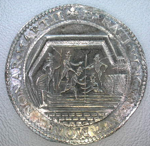 Hetzelfde ontwerp werd ook gebruikt voor de beloningspenningen die aan de opvarenden van het turfschip werden uitgereikt. Zie categorie 7, Historiepenningen, nummer 3.