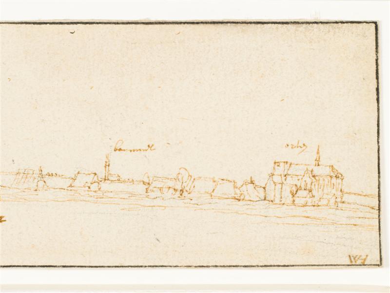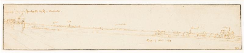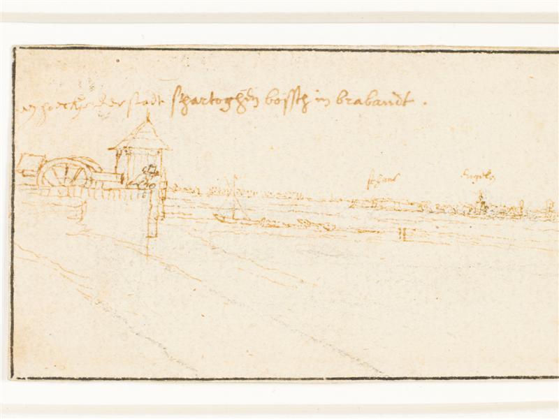 Linksboven in de tekening in bruine pen: "een hoeckje der stadt s hartogen bosch in brabandt" voorts van links naar rechts boven de huizengroepen: "schans", "Engelen", "Crevekeur", "bommel" en "orten" onder de derde huizengroep van rechts: "Den 23 Julij 1632". Verso in potlood: "9047" en "4487" Inv.nr. Prov.Genootschap H55-11a(11)