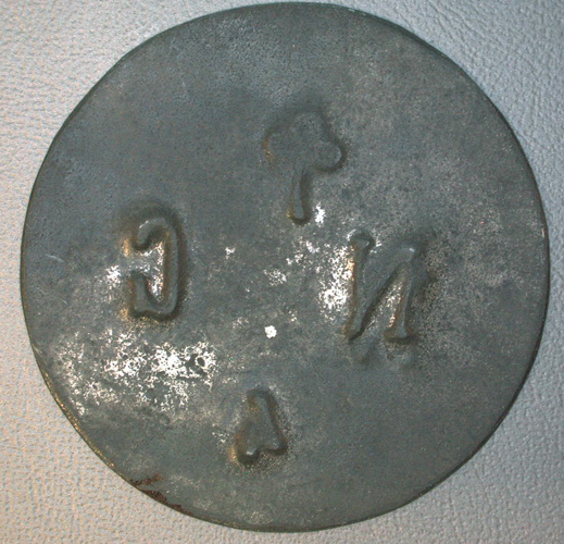- BeschrijvingBlikken plaatje van 4 laken voor de bevrijde zwarte mannen te Suriname, welke wekelijks tegen geld werden ingewisseld. De plaatjes van de mannen waren rond, die van de vrouwen waren vierkant.