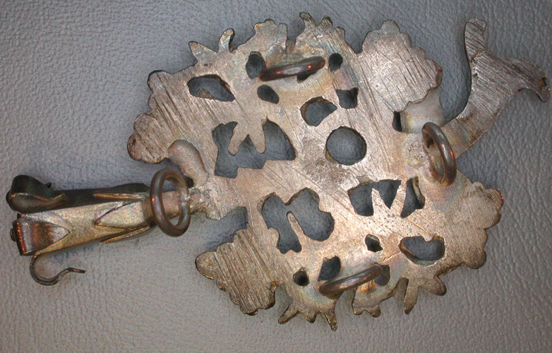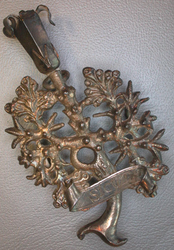 - BeschrijvingVoorzijde: met alleen Sicut. De banderol is aan de einden een maal opgerold. Grote letters. Keerzijde: aan de achterkant zijn vier ogen gemonteerd, waardoor een paars lint gaat, dat bevestigd is aan een paars zijden rozet. Lila rozet van honorair proost
