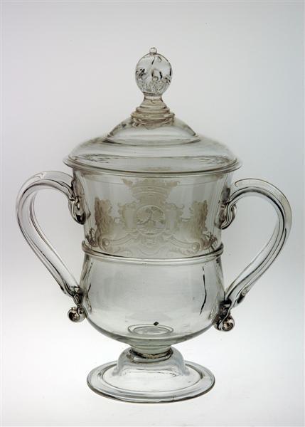 - BeschrijvingVoorzijde cuppa:wapen van de hoogschout Jan Rabo van Keppel. Achterzijde cuppa: vaas met bloemen en vruchten. Vermoedelijk vervaardigd in 's-Hertogenbosch vgl. inv.nrs. 07133-07135