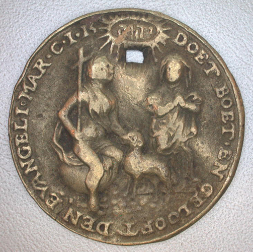 Jan de Dooper, met kruis en lam, spreekt tot een boeteling