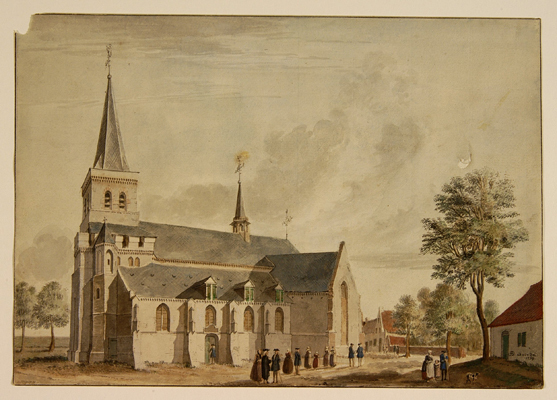 De kerk te Asten uit het zuidwesten