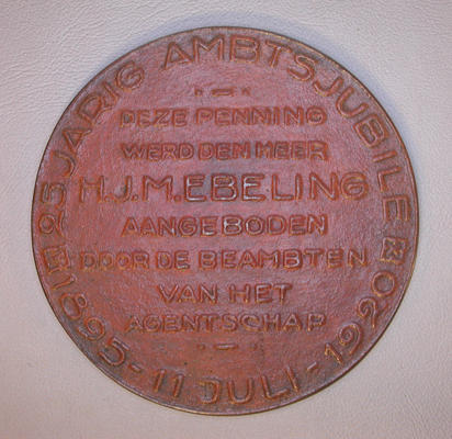 Penning op het 25-jarig ambtenaarschap van H. Ebeling te 's-Hertogenbosch bij het