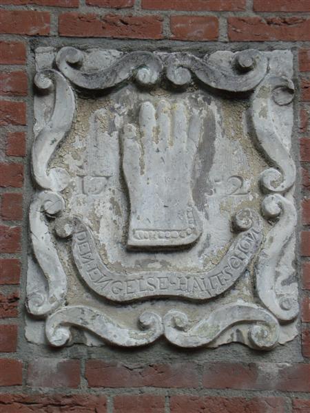 - TitelGevelsteen met afbeelding van handschoen