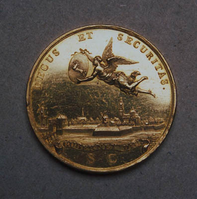 - BeschrijvingVoorzijde, opschrift: "DECUS ET SECURITAS./GUBERNET DIU./S.C." Achterzijde, opschrift: "LAETITIA SILVA DUCENSIUM./ GUBERNAT. V LUSTR./ DUCIS BRUNSV./ MDCCLXXVI"