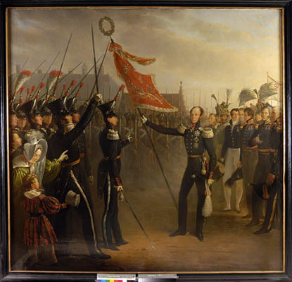 De overdracht van het vaandel door de prins van Oranje aan de Bossche schutterij