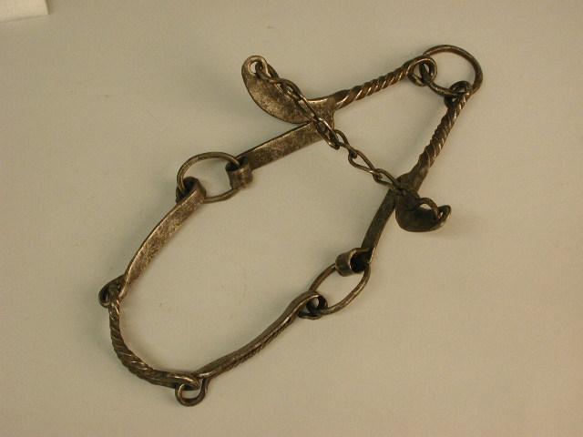 - BeschrijvingVier staven - twee recht, twee met zijstuk (Y-vorm) - met oogvormige uiteinden, onderling met elkaar verbonden met telkens één tussenring. Tussen de dwarsdelen van de tegenover elkaar geplaatste Y-vormige staven een aan één zijde loshaakbare schakelketting.