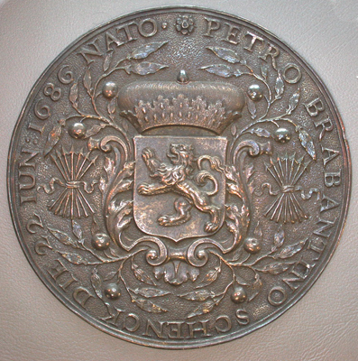 Zilveren penning t.g.v. geboorte Peter Brabander Schenck 22 juni 1686
