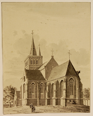 De kerk te Geldrop uit het zuidoosten