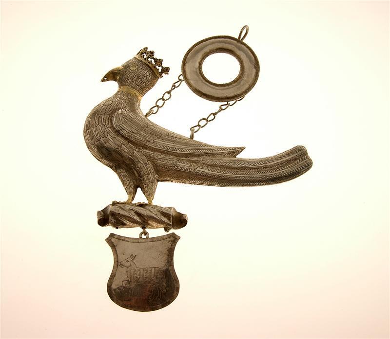 Keten met ring, vogel en wapen van het Sint-Jorisgilde Waalwijk.