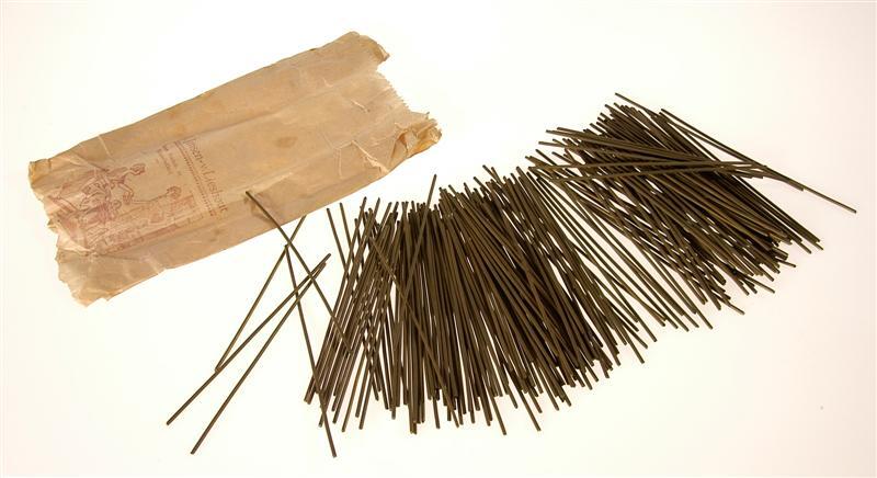 - BeschrijvingEikenhouten doosje met scharnierend deksel met slot. Bevat aantal koperen rietjes.