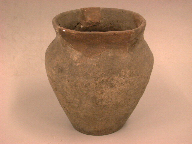 Urn, gewone vorm met twee deuken naast elkaar versierd.