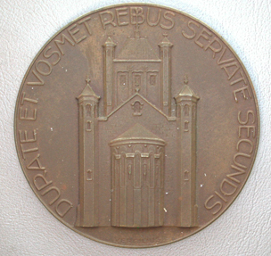 - BeschrijvingVoorzijde: Het seminarie. Omschrift: DURATE ET VOSMET REBUS SERVATE SECUNDIS Middenonder: VERGILIUS Keerzijde: Blanco.