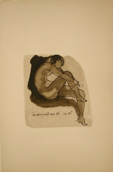 - TitelZittend naakt met kouseband