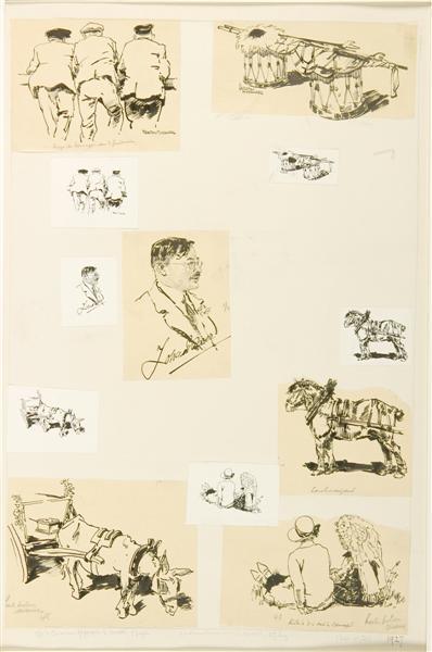 - BeschrijvingZes schetsen en zes bijbehorende cliché's, gemaakt naar aanleiding van de landbouwtentoonstelling, op 27 augustus 1927 en het concours hippique, op 1 september 1927 te Boxtel. Op een vel karton geplakt.