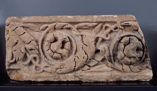 Dit fragment werd aangetroffen in de uiterwaarden van de Maas. Mogelijk maakte het oorspronkelijk deel uit van de tempel van Kessel. De resten daarvan werden in de vierde eeuw gesloopt en zijn wellicht door de Romeinen gebruikt bij de versterking van hun fort aan de Maas bij Kessel.