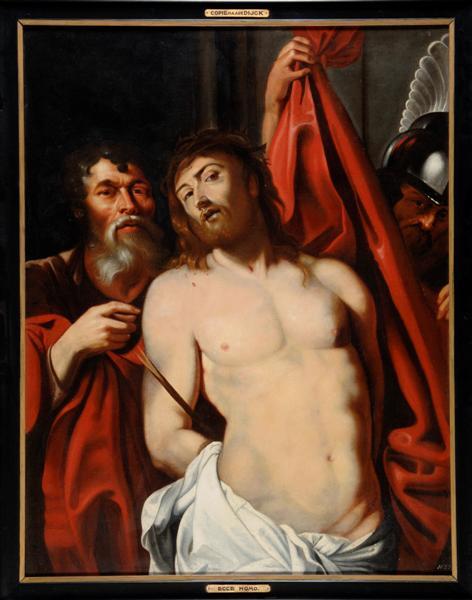 Afgebeeld is het moment dat Christus, na te zijn gegeseld, door Pilatus aan het Joodse volk wordt getoond om de massa te laten oordelen over vrijlating of kruisiging. Het origineel bevindt zich in de 'Schlossgalerie' te Schliessheim. R.o.: no. 22 (oud inventarisnummer gemeente 's-Hertogenbosch). Op lijst boven: 'Copie naar van Dijck'. Onder: 'Ecce Homo'.