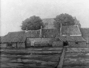 - BeschrijvingHet schilderij wordt omschreven als "oude huizen en voormalige St. Jacobskerk", "oostelijke kant van de achterzijde van het St. Jacobskerkhof te 's-Hertogenbosch", "Moestuinen en oude huizen St. Jacobskerkhof". "Oostelijke kant van het St. Jacobskerkhof".
