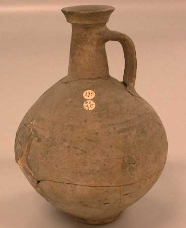 - BeschrijvingKruik, rondbuikig. Heeft de grootste diameter op het midden van de buikhoogte. Met scherpe lipvorm. Vervaardigd van bruingrijze klei. Gladwandig