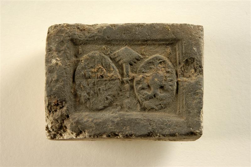- BeschrijvingAls B 1488 PG, doch met kleine afwijkingen (grover ruitmotief in het wapen van Ernest van Beieren. Iets breder stempel).