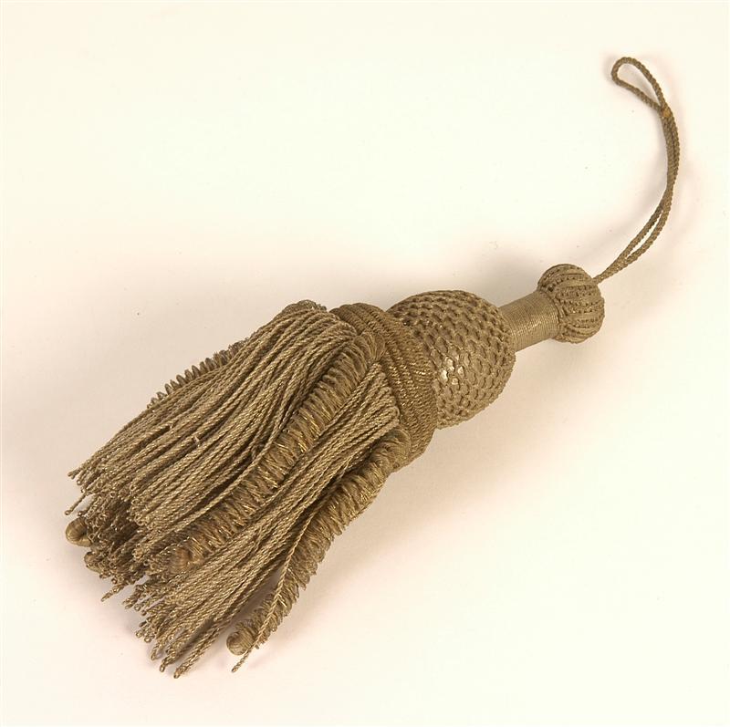 Zilverkwast met fantasie (genette) peer, 5 bouillons en torsade. Ophanglusje. In 1986 ongenummerd aangetroffen.
