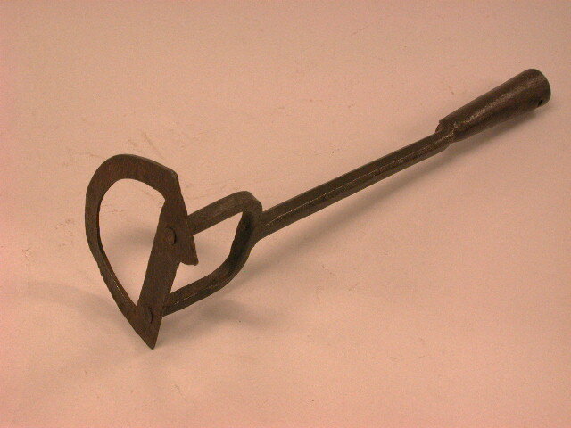 - BeschrijvingBrandmerkijzer dat de afdruk D nalaat. Hoekige steel met dichtgesmede huls en nagelgat met een vorkvormig uiteinde waaraan de D is vastgehecht.