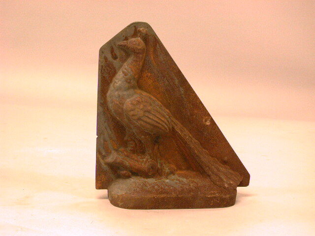 - BeschrijvingTweedelige vorm om een chocolade pauw te gieten, 'en profil'.