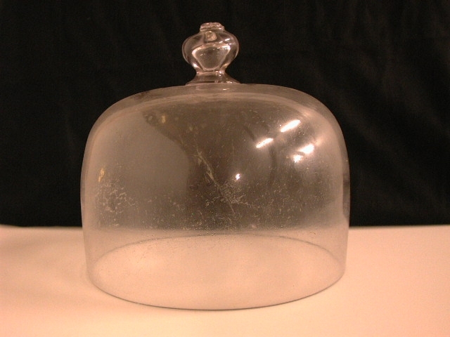 Zware glazen stolp met bovenop een knop.