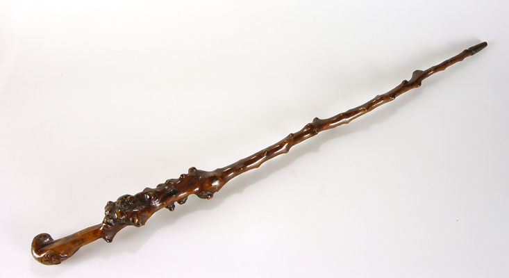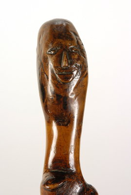 Wandelstok met een handvat in de vorm van een vrouwengezicht.