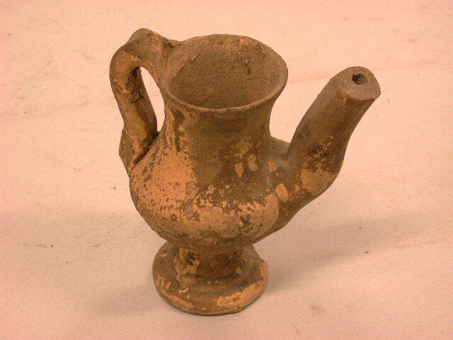 Speelgoed koffiepotje van rossig aardewerk met loodglazuur