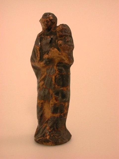 Maria met kind op de arm op sokkel.