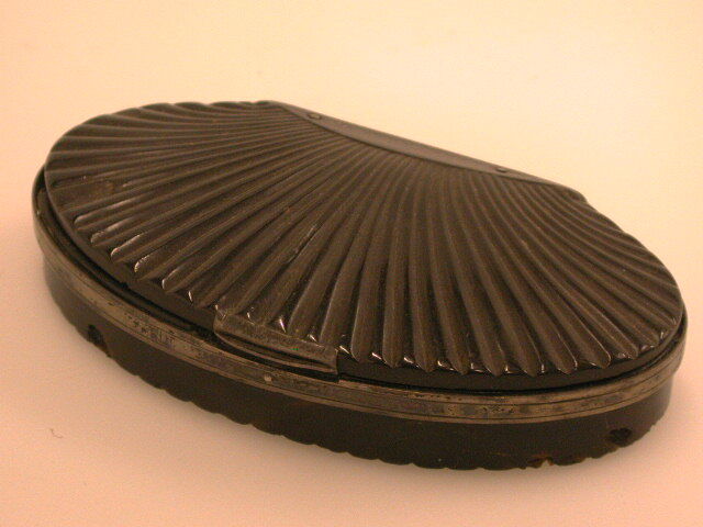 Snuifdoos in de vorm van een schelp gemaakt van schildpad met zilveren garnituur.