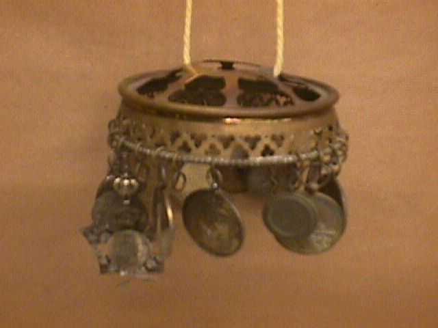 Koperen vaandelstokbekroning waaraan zestien medailles hangen