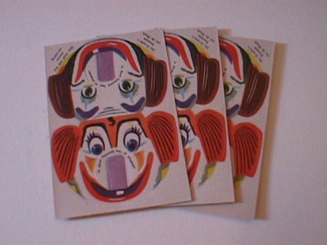 - BeschrijvingPapieren bouwplaat van een clownsgezicht, dat gevouwen kon worden in de vorm van een eihouder. Tekst: DE GRUYTER'S SNOEPJE VAN DE WEEK, ELKE WEEK EEN NIEUWE VERRASSING.
