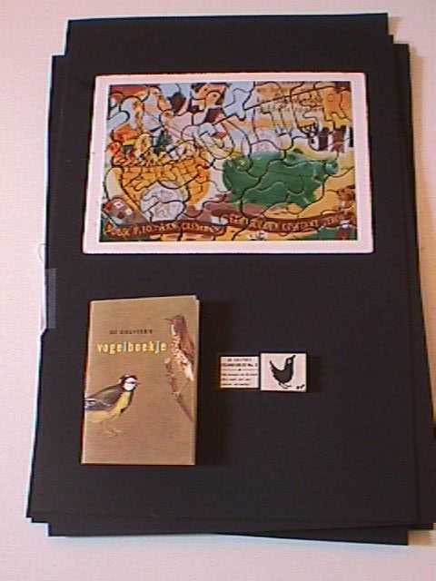 Vijf vellen papier met daarop geplakt diverse uitingen van De Gruyter reclame.