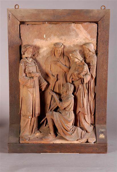 - BeschrijvingVoorstelling van de H.Laurentius die kerkgoederen aan de armen schenkt.