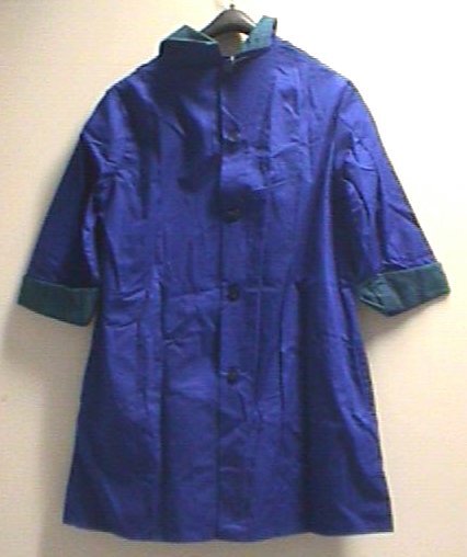 - BeschrijvingDonkerblauwe blouse voor fabriekspersoneel van De Gruyter met v-hals en achtersluiting via vijf donkerblauwe knopen. Kraag, machetten en zakken zijn afgewerkt met een groen met blauw geruite stof. De mouwen hebben een driekwart lengte. Er hoort een losse donkerblauwe ceintuur bij, deze zit opgerold in de zak.