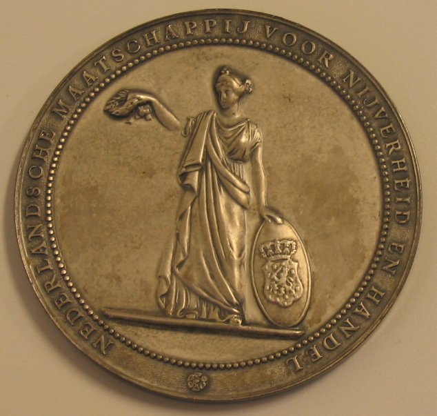 Gedenkpenning van de Nederlandsche Maatschappij voor Handel en Nijverheid in doosje