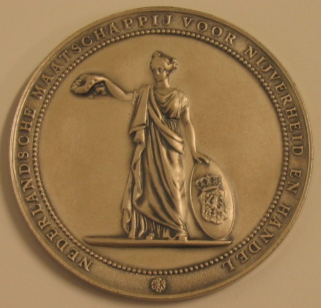 Gedenkpenning van Nederlandsche Maatschappij voor Nijverheid en Handel in doosje