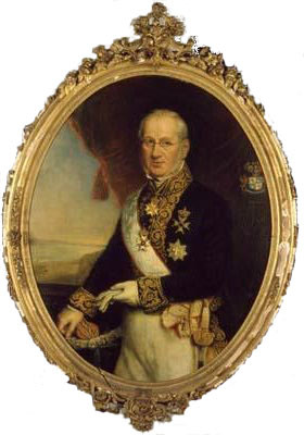 - BeschrijvingGeportretteerde was oud-gezant in Zweden, afgebeeld tot aan de knieen tegen een donkerrode draperie. Met zijn rechterhand steunt hij op een tafel waarop een hoed ligt. In zijn linkerhand houdt hij een handschoen. Hij is gekleed in een uniform en draagt verscheidene onderscheidingen en een witte sjerp.