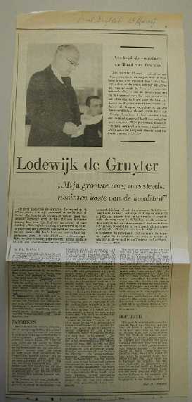 - BeschrijvingArtikel uit het Brabants Dagblad van 28 mei 1967 betreffende het afscheid van Lodewijk de Gruijter als voorzitter van de Raad van Bestuur.