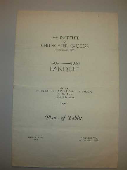 - TitelTafelschikking voor het banket van The Institute of Certificated Grocers op 30 april 1930