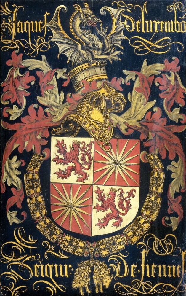Wapenbord van Jacob I van Luxemburg, heer van Fiennes, in zijn hoedanigheid van ridder in de orde van het Gulden Vlies